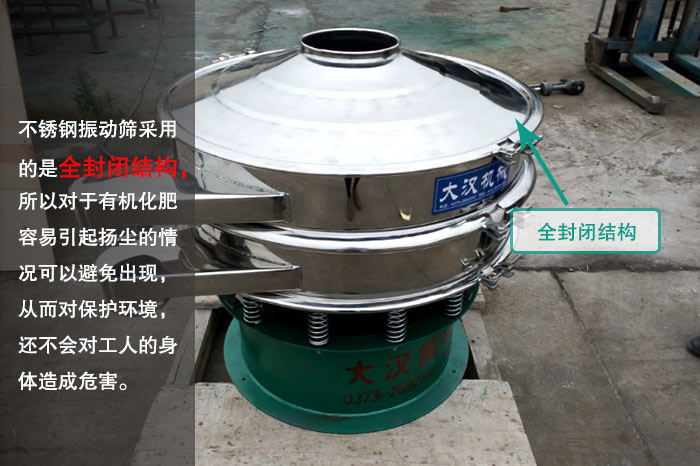 不銹鋼振動篩采用的是全封閉結構,所以對于有機化肥容易引起揚塵的情況可以避免出現,從而對保護環境,還不會對工人的身體造成危害。