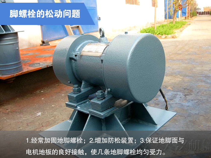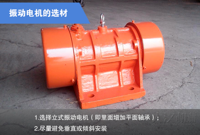 預(yù)防措施:1.選擇立式振動電機(jī)(即里面增加平面軸承);2.盡量避免垂直或傾斜安裝。