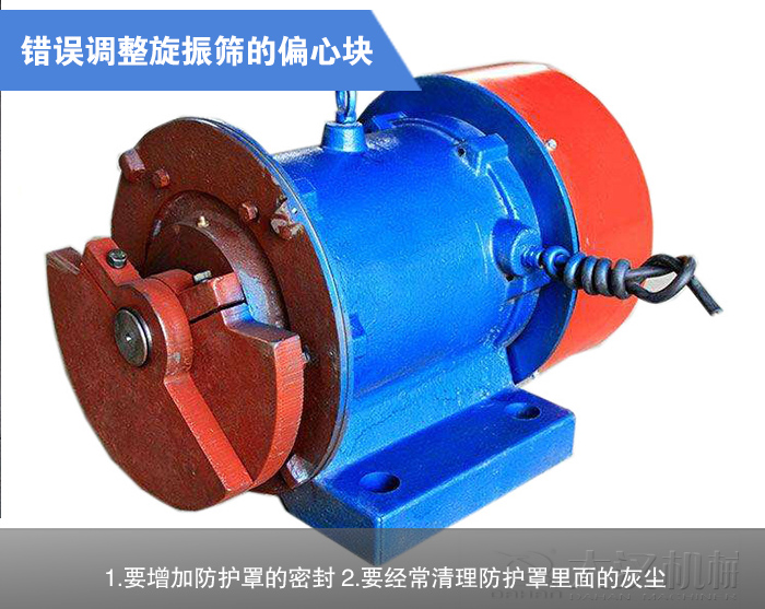 調(diào)整圓振動篩偏心塊時,誤把兩端偏心塊的方向調(diào)反,使振動電機(jī)產(chǎn)生一個空間扭矩,使振動電機(jī)在非正常狀態(tài)下工作,進(jìn)而引起燒毀。因此調(diào)整偏心塊時,一定要注意其對稱性,即兩端偏心塊要兩兩對應(yīng),或者說是兩端偏心塊的重心連接線要與轉(zhuǎn)軸平行,不能成異面狀態(tài)。由于振動電機(jī)的工作環(huán)境大都非常惡劣、粉塵大,如果防護(hù)罩密封不嚴(yán),很容易進(jìn)灰塵,引起偏心塊的摩擦運(yùn)轉(zhuǎn),從而燒毀電機(jī)。所以在工作環(huán)境惡劣的地方,
