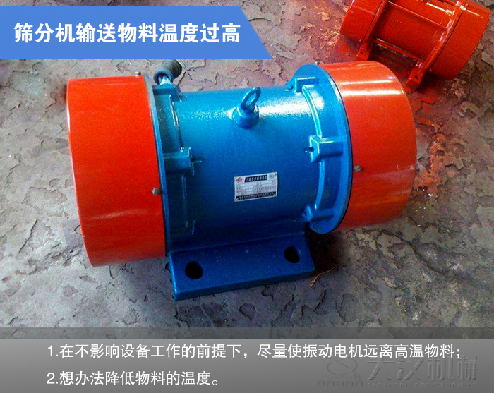 預(yù)防措施:1.在不影響設(shè)備工作的前提下,盡量使振動電機(jī)遠(yuǎn)離高溫物料;2.想辦法降低物料的溫度。