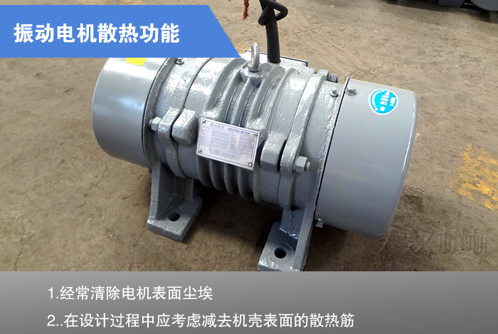 普通電機(jī)--端有風(fēng)扇,工作時使風(fēng)向順著機(jī)殼上面的立筋流動,不僅散熱較快,而且也清除了上面的塵埃,使電機(jī)在良好的狀態(tài)下工作。而振動電機(jī)因無風(fēng)扇可散熱,全靠自然冷卻,再加上工作環(huán)境大都非常惡劣,粉塵大,粉塵極易在電機(jī)表面堆積,從而引起內(nèi)部溫度過高,燒毀電機(jī)。