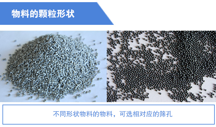 物料的顆粒形狀一般為多角形,還有條狀、板狀、片狀等,這些形狀的顆粒難以透過方孔和圓孔,但是容易透過長方孔。如果物料顆粒是圓形,則容易透過方孔和圓孔。
