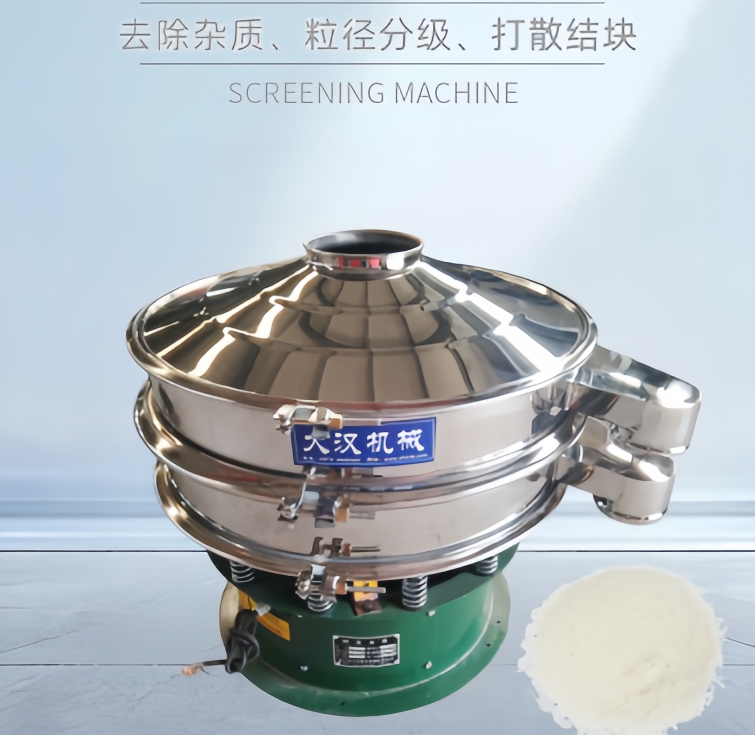 旋振篩:是氫氧化鈉篩分中應用最廣泛的類型,采用立式振動電機配合偏心重錘驅動,使篩體產生水平、垂直、傾斜的三維運動,實現多種粒度的氫氧化鈉篩分,直徑可做400-2000mm,支持1-6層篩網,實現多等級分級。