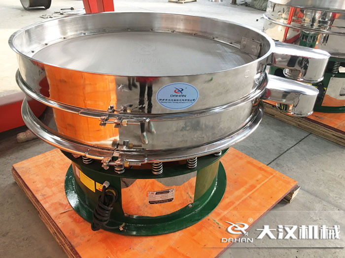 DH-1000-1S型振動篩分機為1500mm直徑單層兩出口不銹鋼三次元振動篩,子母網(wǎng)分離式網(wǎng)架,與物料接觸半部為304不銹鋼材質,底座為碳鋼材質。